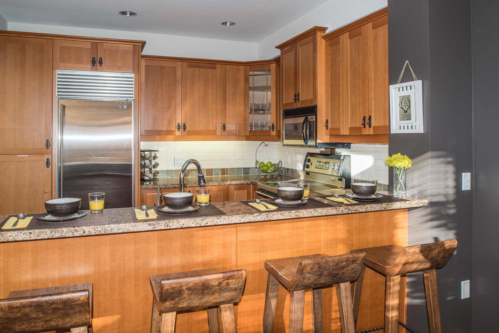 Fully equipped kitchen with stainless steel appliances. Also offer a slow cooker, panini maker, waffle maker, blender, french press, Nespresso maker, coffee grinder and 14-cup drip coffee maker.