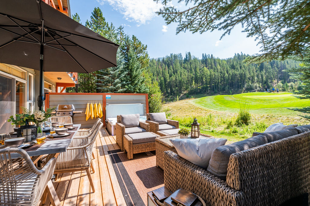 Lone Wolf Chalet offers a large private hot tub on a South-facing deck that is only for your personal use. Soak in the hot tub and take in the amazing views while rejuvenating yourself after a day of skiing or golfing. The private deck also has a gas BBQ and is furnished with seating for everybody to enjoy the spectacular summer views of Greywolf golf course. Enjoy a beverage or dinner on the sunny deck while the kids play!