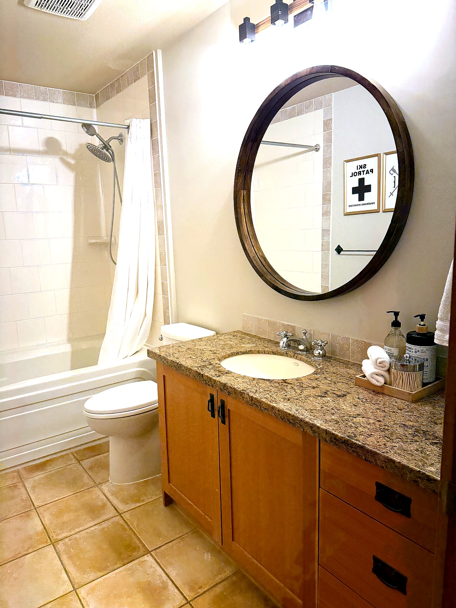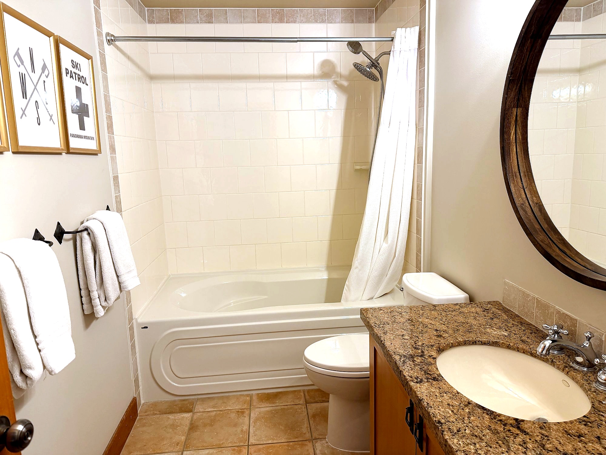 The second full bathroom is a generous 4-piece with heated floors — everything you need for a comfortable stay.